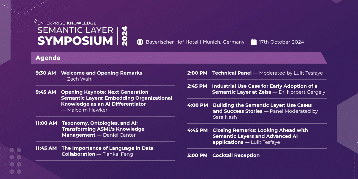 This one-of-a-kind symposium offers attendees actionable insights on how to leverage Semantic Layers to connect and optimize organizational data and knowledge, enhancing decision-making, operational efficiency, and insight generation.